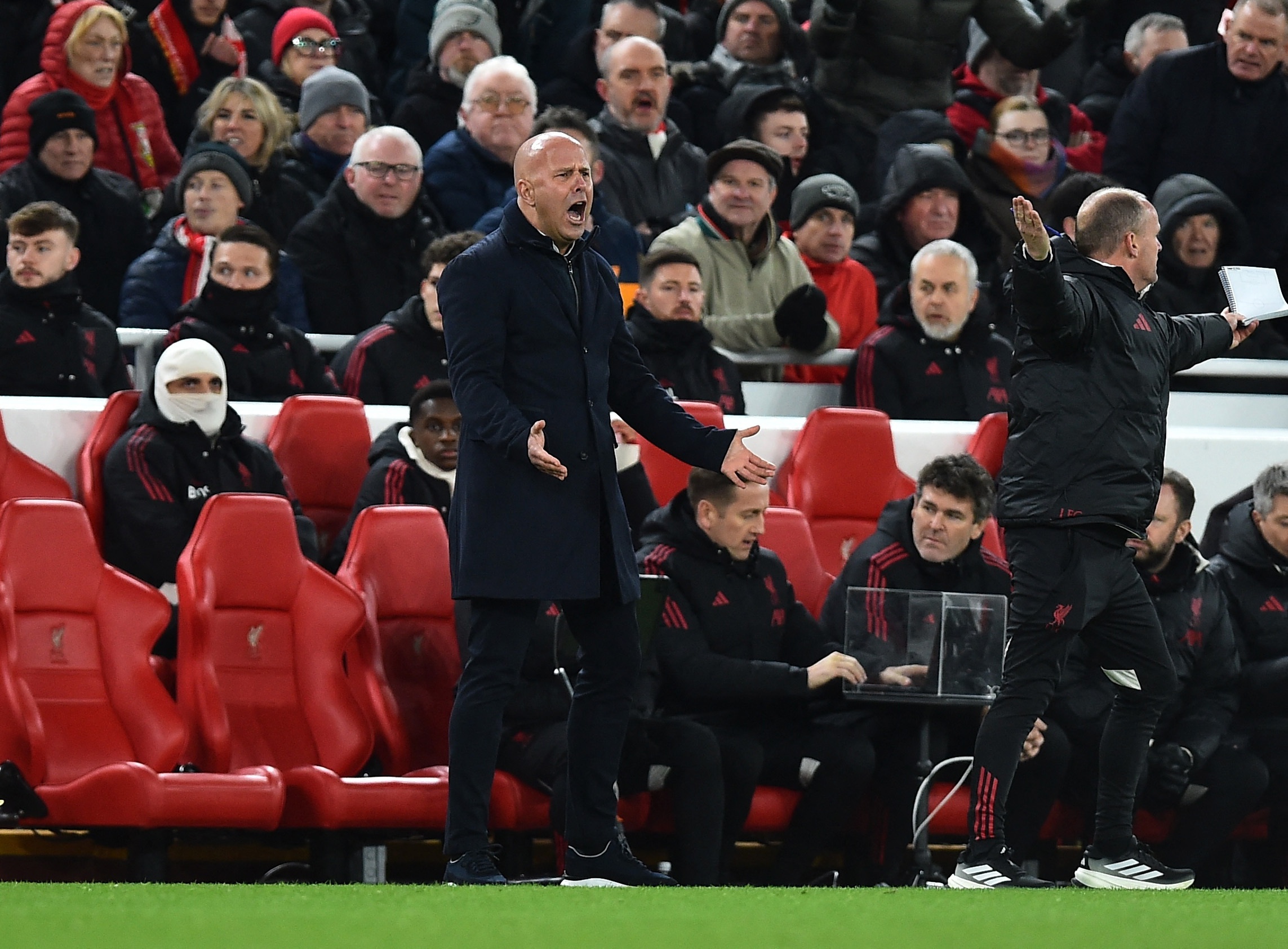 上赛季,安菲尔德球场是利物浦的堡垒,斯洛特的球队19场主场联赛14胜4平1负,最终赢得了英超冠军,客队无为在体能和工夫上被压制。那种令东谈主生畏的声势幽静隐没,利物浦自2020-21赛季以来初度在各项赛事中聚拢三场主场未能取胜。