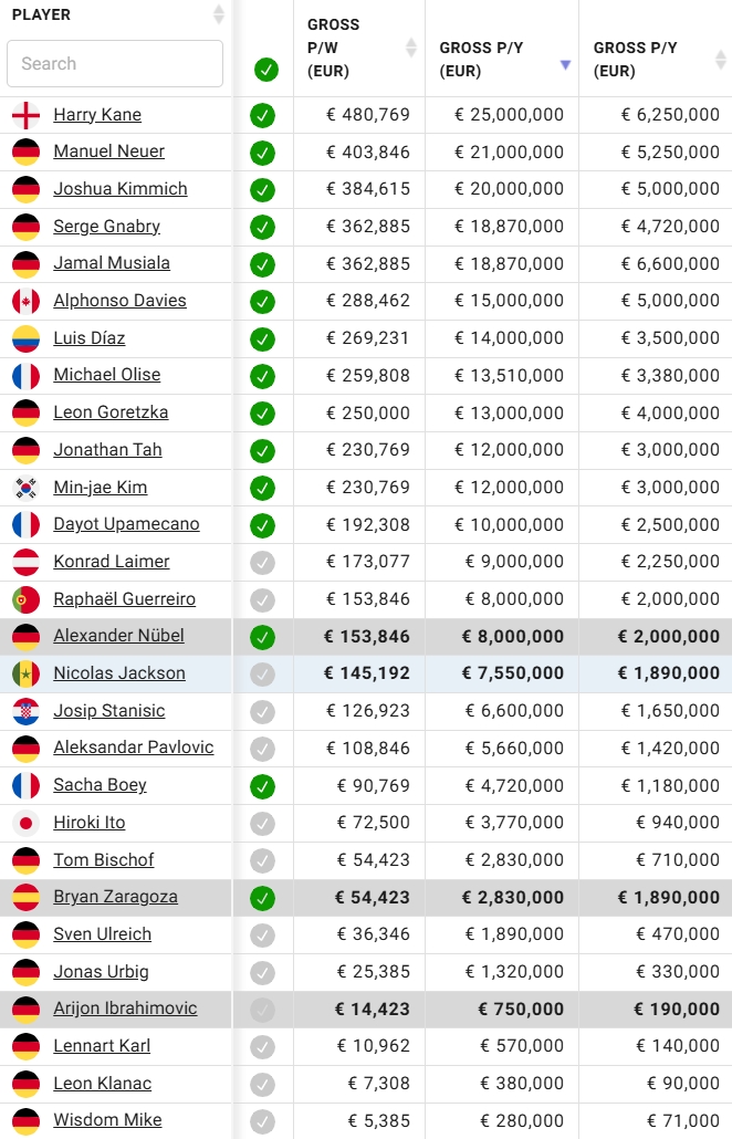 拜仁队内当今薪资最高的球员是凯恩,年薪达到2500万欧。你以为若拜仁与奥利塞续约,他应拿到什么级别的薪资?