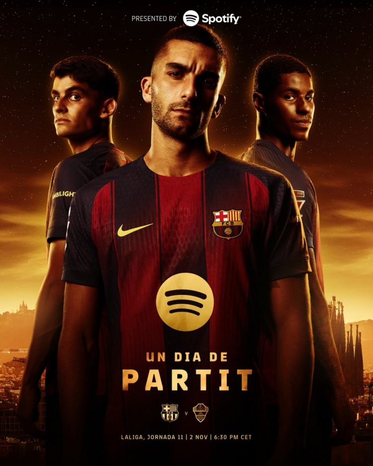 巴萨官方社媒发布了为此役制作的海报,费兰-托雷斯、拉什福德、马丁出镜。