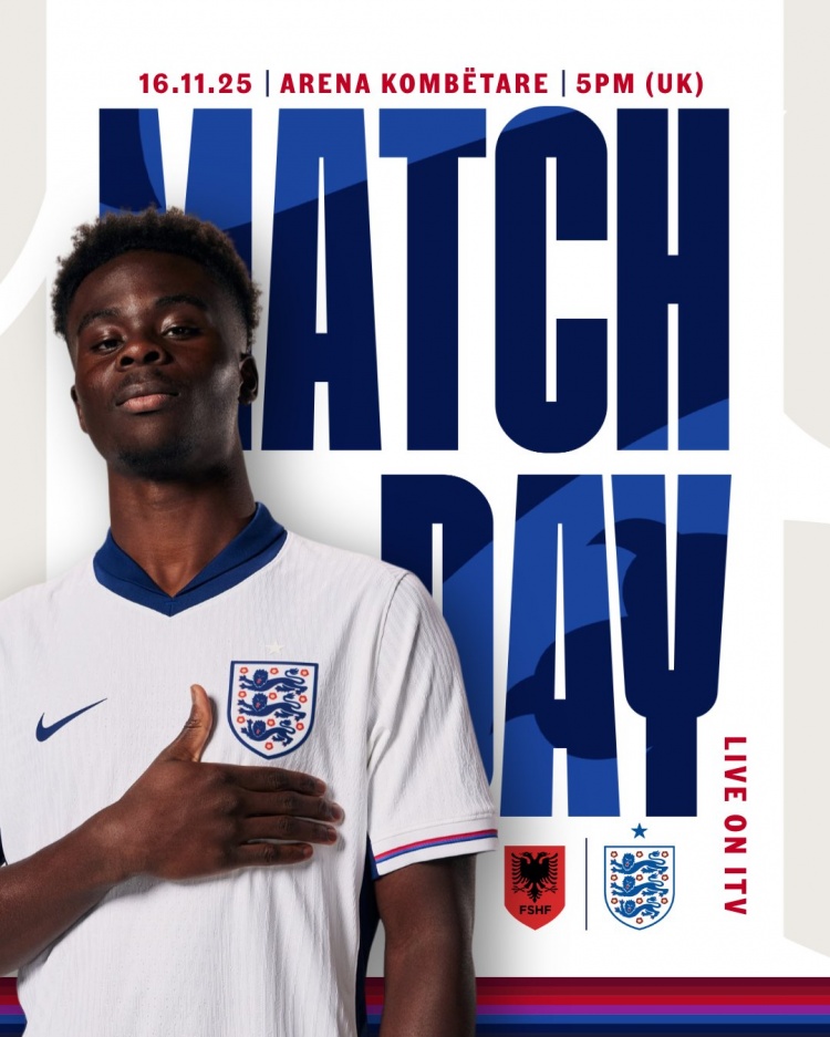英格兰队官方社媒晒出赛前海报,预热世初赛和本年的收官战,队内前卫萨卡单东说念主出镜。