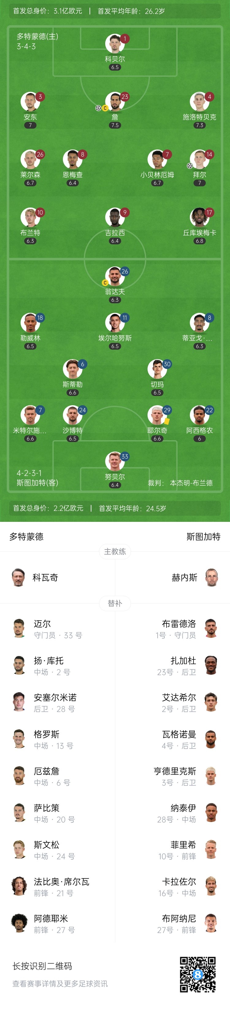 伤停补时3分钟。上半场比赛戒指,多特2-0斯图加特。