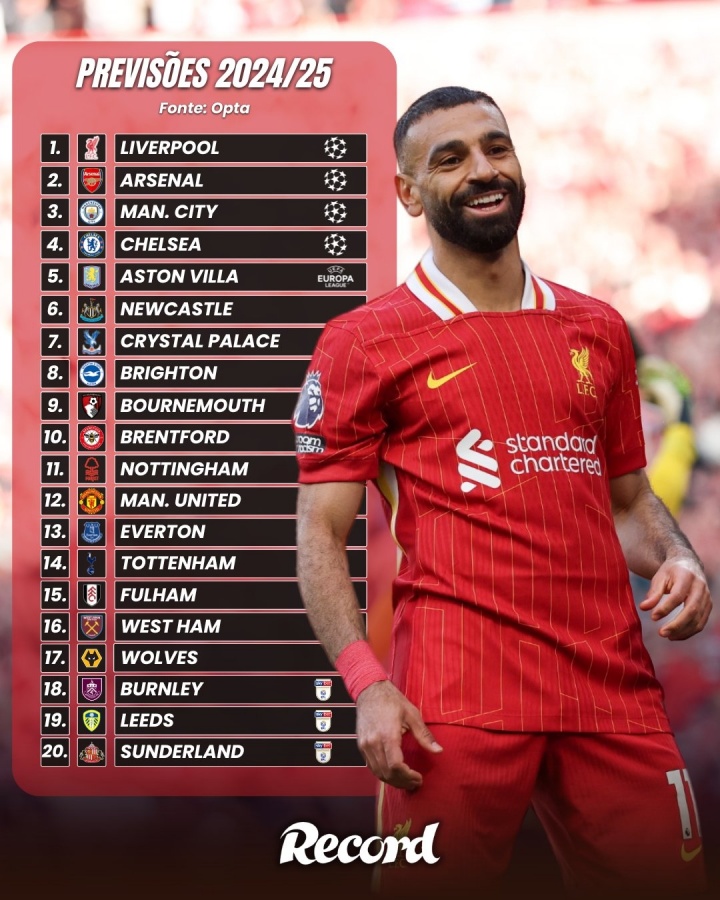 08月08日讯 OPTA期骗超等规画机对新赛季英超作念出瞻望,看好利物浦得胜卫冕,阿森纳则再次亚军,曼联只排第12名。