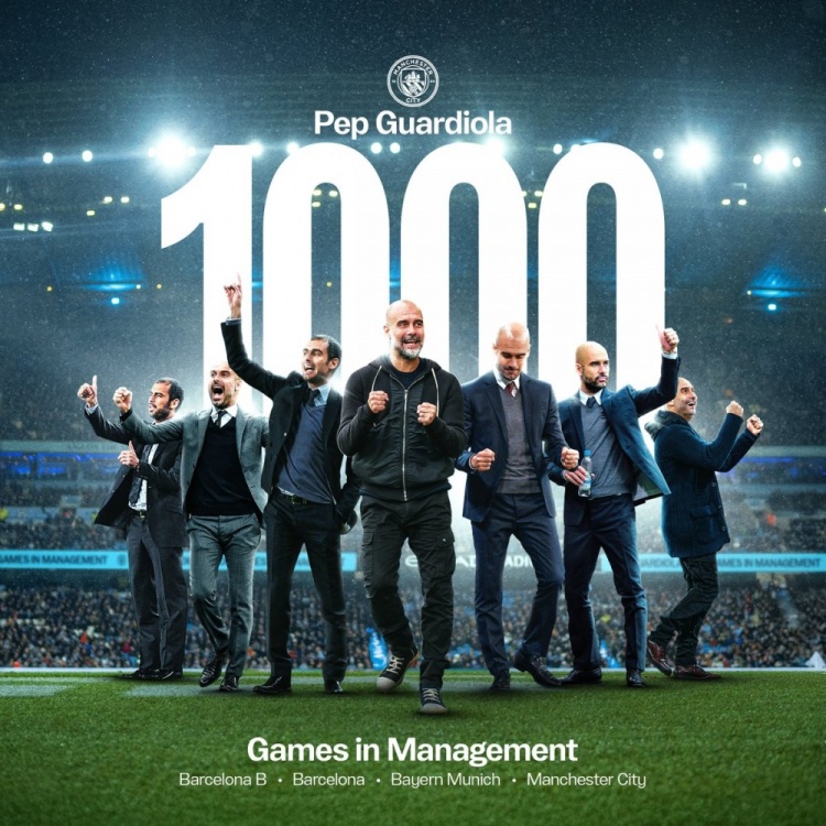 曼城官方社媒晒出瓜迪奥拉握教生计1000场里程碑海报,配文:“瓜迪奥拉将在对阵利物浦的比赛中迎来光线握教生计的1000场比赛。”