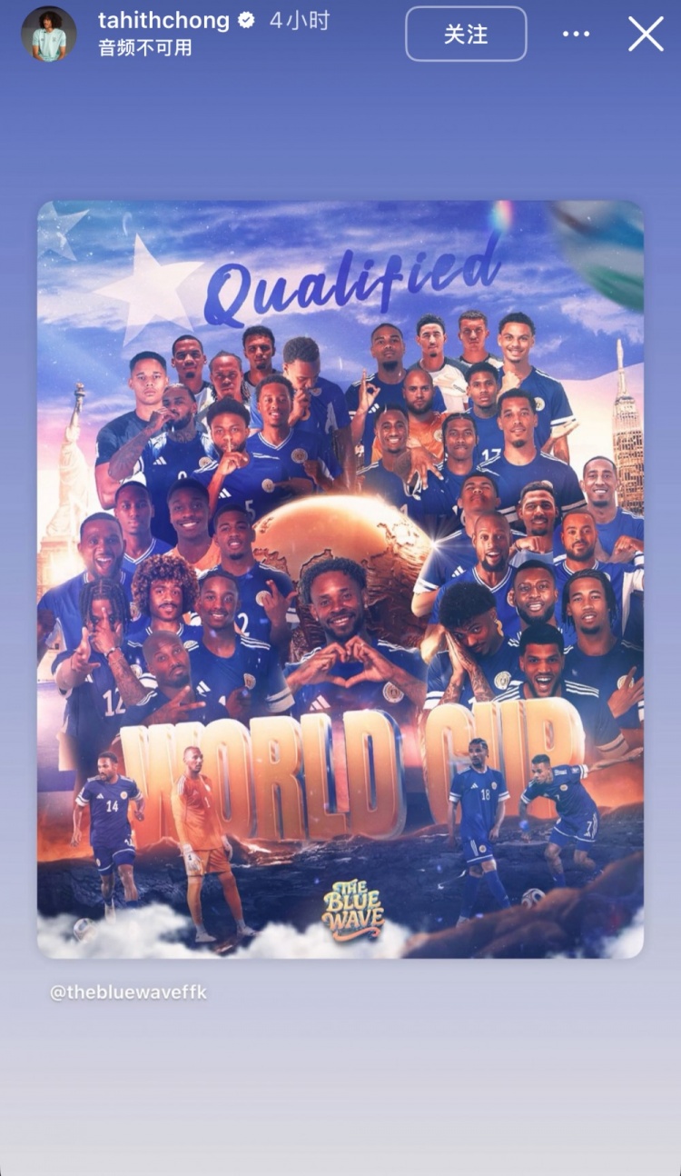 25岁华侨球员陈达毅(旧译为钟塔西)在比赛遗弃后更新社媒,晒出了库拉索晋级全国杯的庆祝海报。