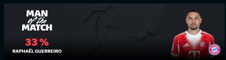 他也在赛后以33%得票率被德甲球迷票选为本场比赛最好球员。