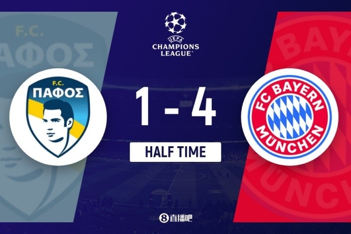 上半场莫得伤停补时,半场截止,拜仁暂4-1帕福斯。