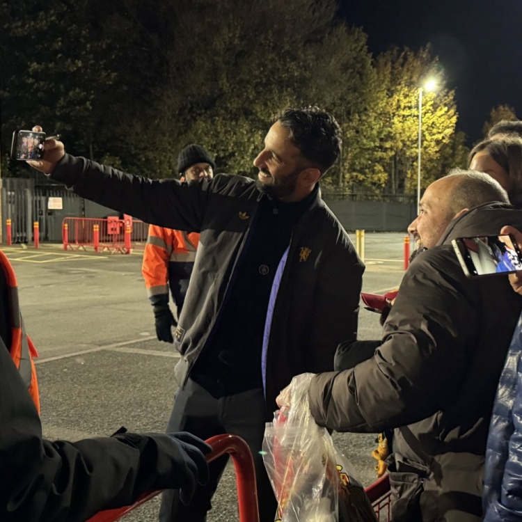 此前备受诟病的主帅阿莫林也在赛后赢得追捧,在比赛收尾两小时后仍然在为曼联球迷们签名合影,他在提起手机自拍时也分解了本旨的笑颜。