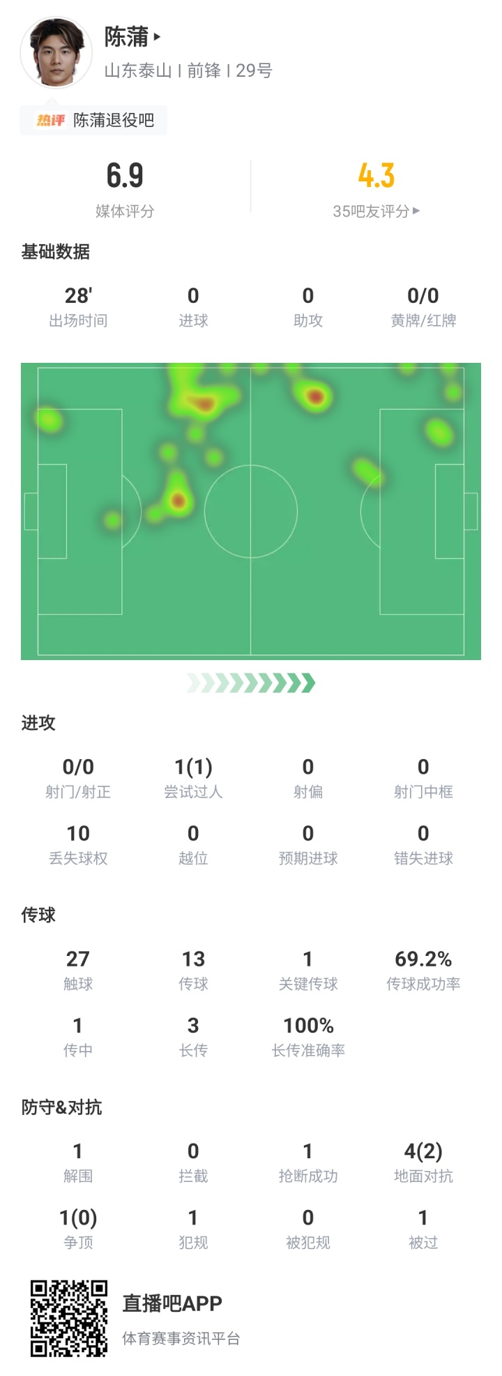 11月01日讯 中超第28轮,山东泰山2-1打败天津津门虎,赛后替补登场的陈蒲弘扬遭到球迷吐槽。