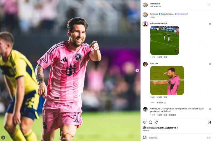 梅西本场2球1助率队晋级,下轮迈阿密海外对阵辛辛那提。赛后梅西更新ins写说念:咱们链接冲@迈阿密海外