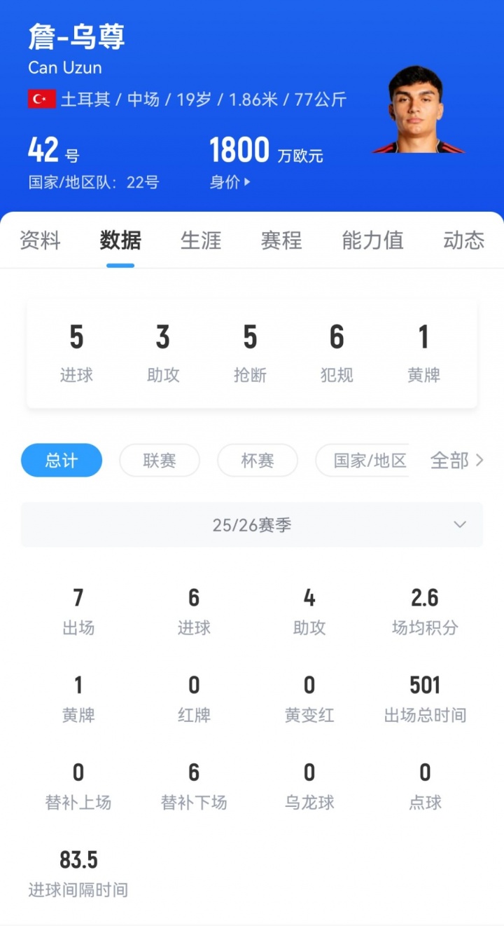 本赛季初乌尊就迎来了大爆发,他在德甲前5轮比赛中每场均打入1球,而况一共送出了3次助攻,在球队欧冠5-1大捷加拉塔萨雷的比赛中,乌尊也打入了一粒漂亮的进球。现在乌尊的德回身价为1800万欧元。