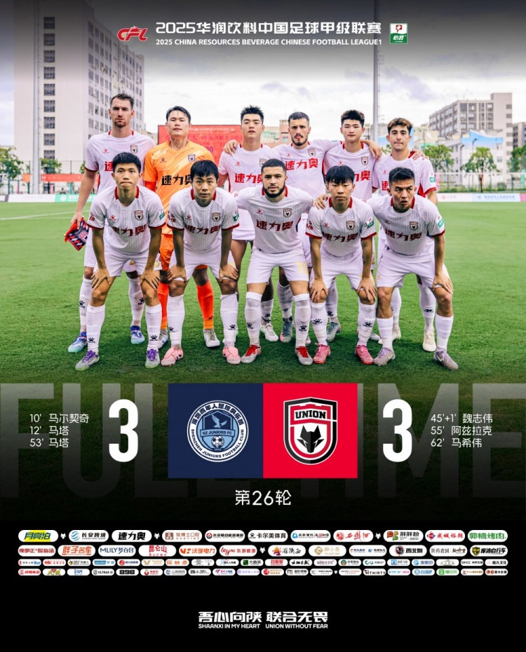 陕西连合月亮泊客场3:3战平深圳后生东说念主