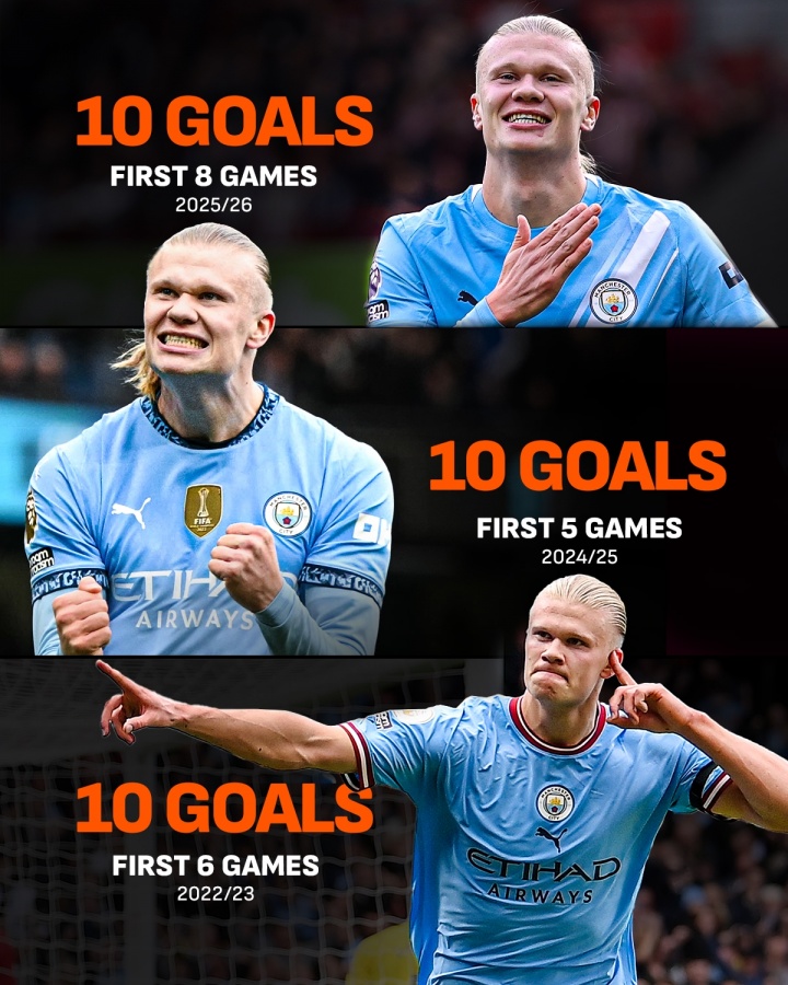 哈兰德本场比赛的第1个进球匡助他本赛季的联赛进球达到了10个,成功上双,而据统计,不祥在英超前8轮比赛中结束进球上双的球员唯有一位,恰是哈兰德。