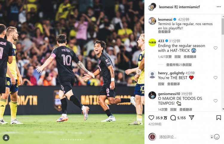 10月19日讯 好意思职联比赛,梅西3射1传,迈阿密外洋客场5-2打败纳什维尔,通例赛第三名收官。