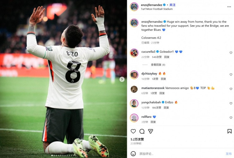 他也在赛后通过社媒晒出我方的庆祝照,并配文:“客场获取关节到手,感谢扫数远征球迷的撑抓。斯坦福桥相遇,咱们蓝军老是谐和在统统”。