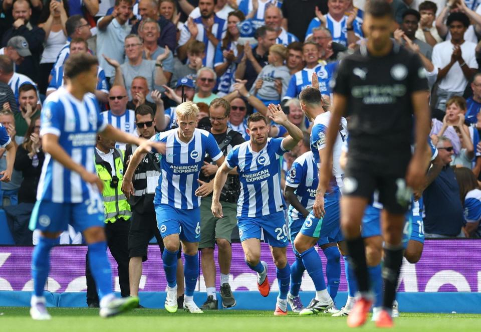 倒是布莱顿越踢越神勇,在努内斯手球送大礼,布莱顿由米尔纳主罚射中扳平比分后,士气大振的海鸥军团在第89分钟用一次精彩的快速反击,由格鲁达把执住单刀契机完成绝杀,最终曼城遭逆转,无奈吞下了2连败。